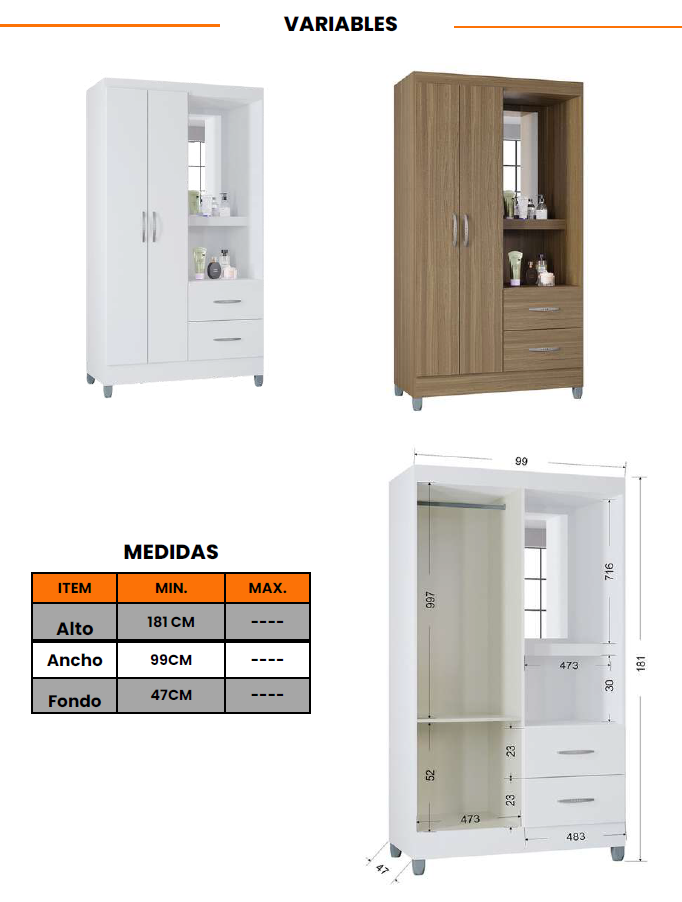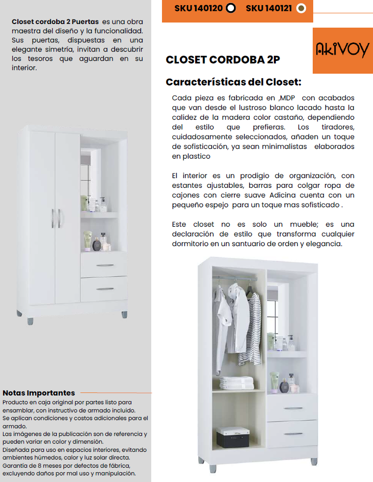 Fabricado en MDP de 15 mm, este clóset garantiza resistencia y durabilidad, perfecto para el uso diario en tu hogar. Sus líneas rectas y diseño contemporáneo se adaptan a cualquier estilo de decoración, convirtiéndolo en una pieza versátil y elegante.