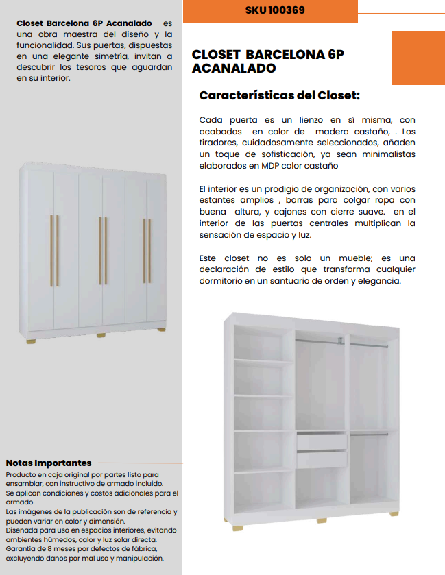 Closet 6p Barcelona Blanco: Elegancia y funcionalidad para tu hogar