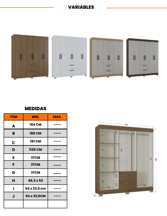 El interior es un prodigio de organización: cuenta con estantes ajustables, barras para colgar ropa y cajones con cierre suave, pensados para maximizar el orden y facilitar el acceso a tus prendas.