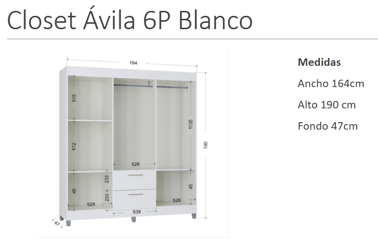 Renueva tu espacio con el Closet 6P2C Ávila Blanco y disfruta de un ambiente más organizado y elegante.