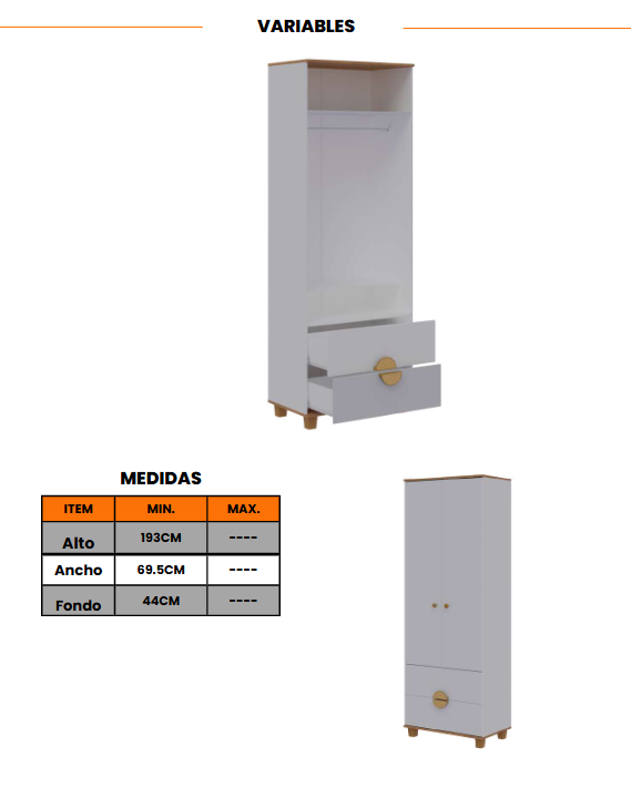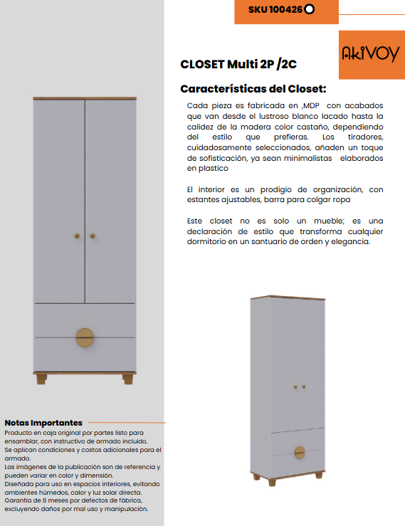 CLOSET MULTI 2P/2C BLANCO PREMIUN / RUSTIC