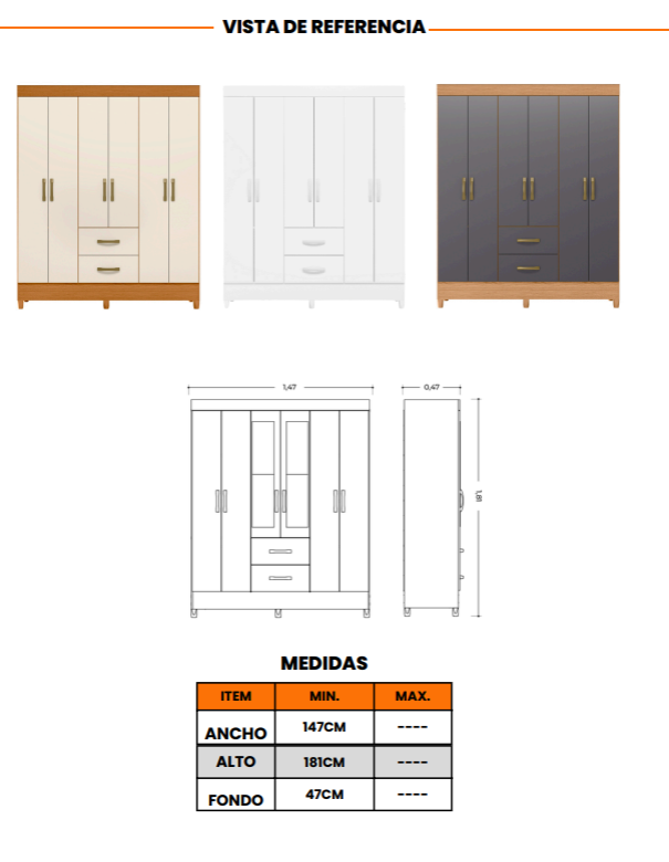 Este ropero no es solo un mueble, es una declaración de estilo que convierte tu dormitorio en un santuario de orden y elegancia. Ideal para quienes buscan funcionalidad sin sacrificar diseño.