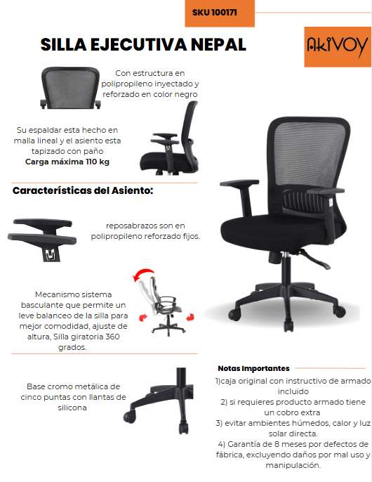 Descubre la comodidad y sofisticación que ofrece la Silla Ejecutiva Nepal, diseñada para espacios de trabajo exigentes. Cuenta con un respaldo tapizado en malla de nueva generación lineal en color negro, que garantiza frescura y soporte ergonómico durante largas jornadas.