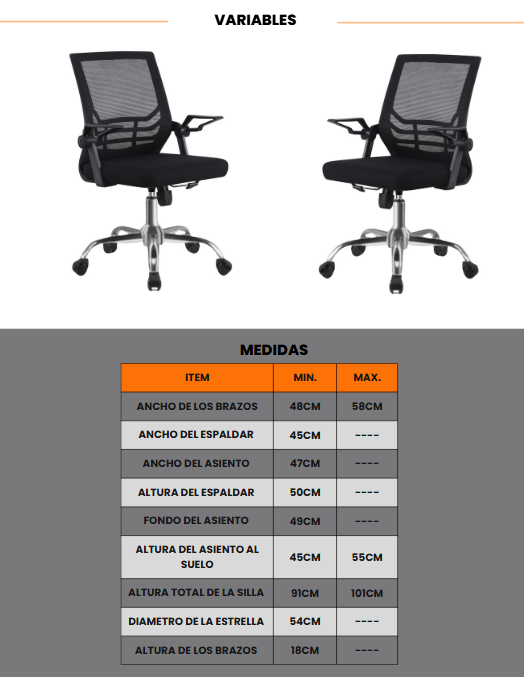 [tab titulo="Descripcion"] Esta silla de oficina ergonómica llega en su caja original, lista para ensamblar en tu espacio de trabajo. El paquete incluye un instructivo de armado detallado, facilitando su montaje. Ten en cuenta que se aplican condiciones y costos adicionales para el armado.