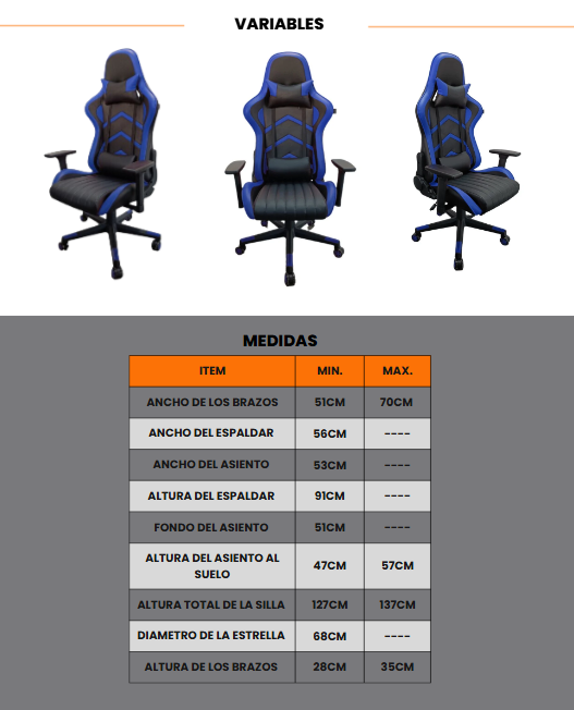 Su sistema ajustable permite elevar el asiento y reclinar el respaldo hasta 135°, adaptándose a diferentes posiciones para mayor confort. Su diseño funcional y moderno es ideal para gamers que buscan rendimiento y bienestar en un solo producto.