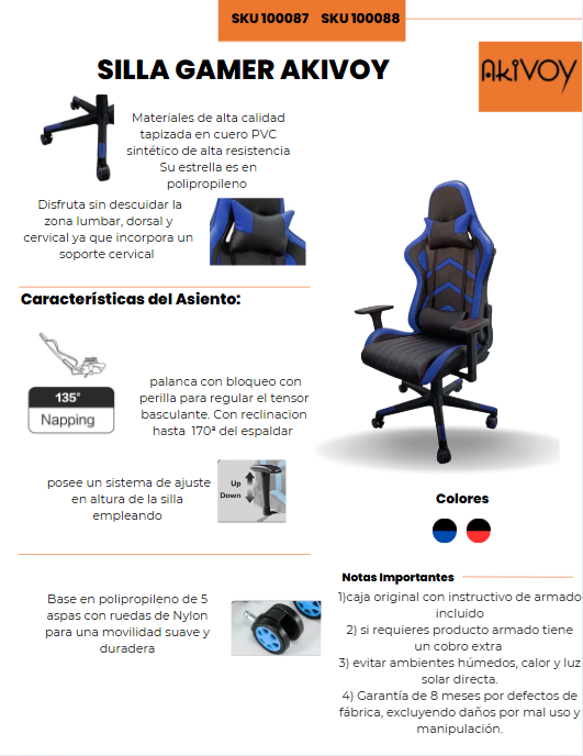 Silla Gamer Akivoy Azul: comodidad y soporte para largas sesiones de juego