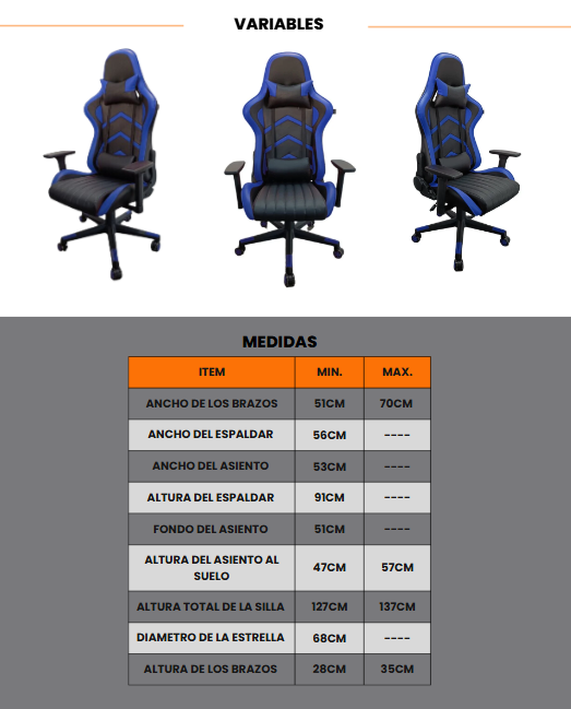 Su respaldo incluye un cojín de soporte lumbar y otro cervical en el cabecero, que cuidan tu postura durante el juego. Además, el sistema de ajuste permite elevar y reclinar el respaldo hasta 135°, adaptándose a tus diferentes posiciones.