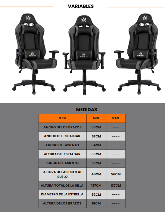 Los brazos 2D son completamente ajustables en altura y dirección, permitiendo personalizar tu nivel de confort. La base metálica de 5 aspas, junto con las ruedas de silicona, garantiza estabilidad, durabilidad y un deslizamiento suave sobre cualquier tipo de superficie.