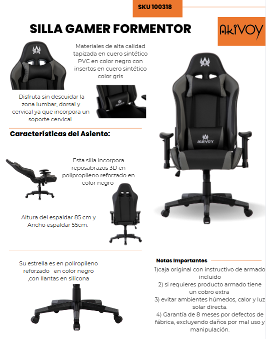 La Silla Gamer Formentor es la elección perfecta para jugadores y profesionales que buscan una silla que combine confort, ergonomía y un diseño atractivo para mejorar su experiencia de juego o trabajo