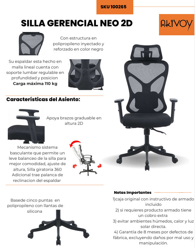 Silla Gerencial Neo 2D: Comodidad y diseño para tu oficina