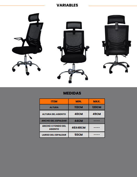 Su diseño anatómico se adapta a la curvatura natural de su espalda, ofreciendo un soporte óptimo que mejora la postura y previene molestias durante largas jornadas laborales. Además, el cabecero ajustable en altura le permite personalizar su comodidad.