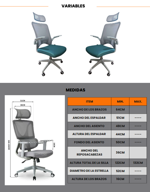 Ideal para ambientes profesionales que buscan ergonomía y estilo, esta silla es la opción perfecta para quienes valoran el confort y la funcionalidad en su espacio de trabajo.