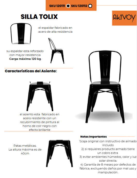Esta silla es ligera, resistente y cuenta con gomas antideslizantes en sus patas que garantizan estabilidad en cualquier superficie. Además, su diseño apilable permite ahorrar espacio sin perder estilo ni comodidad.